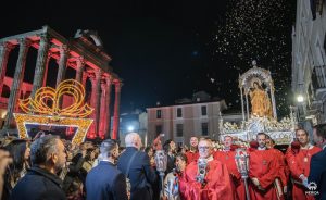 La Patrona de Mérida, la Mártir Santa Eulalia, recorrió ayer noche las calles de Mérida en su tradicional procesión fr vísperas que como cada 9 de diciembre, la lleva hasta la Concatedral de Santa María. En su recorrido ha estado acompañada por cientos de emritenses que alumbrban su camino con velas, teniendo o una gran petalada, a la altura del Templo de Diana.