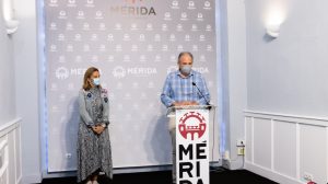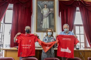 El Ayuntamiento de Mérida ha presentado esta mañana las camisetas que lucirán los peregrinos emeritenses en el encuentro que mantendrán en la pedanía de Santa Eulalia de Úbeda (Jaén) con los peregrinos que llegan a pie desde Totana (Murcia), que están realizando el recorrido del Camino Eulaliense, “Totana-Mérida”.