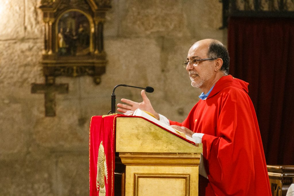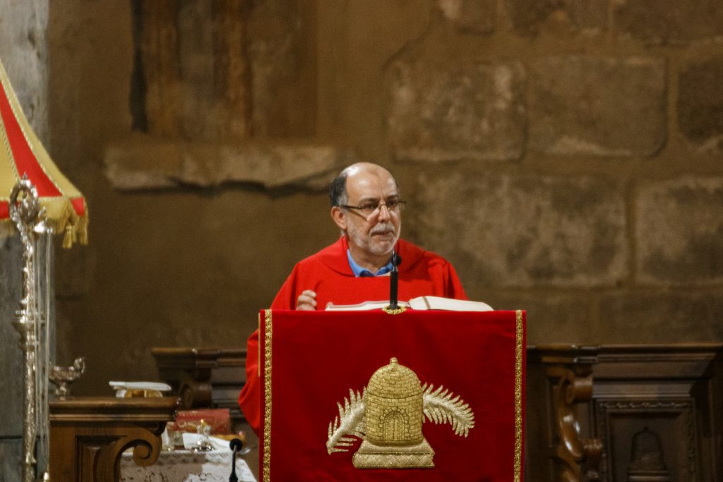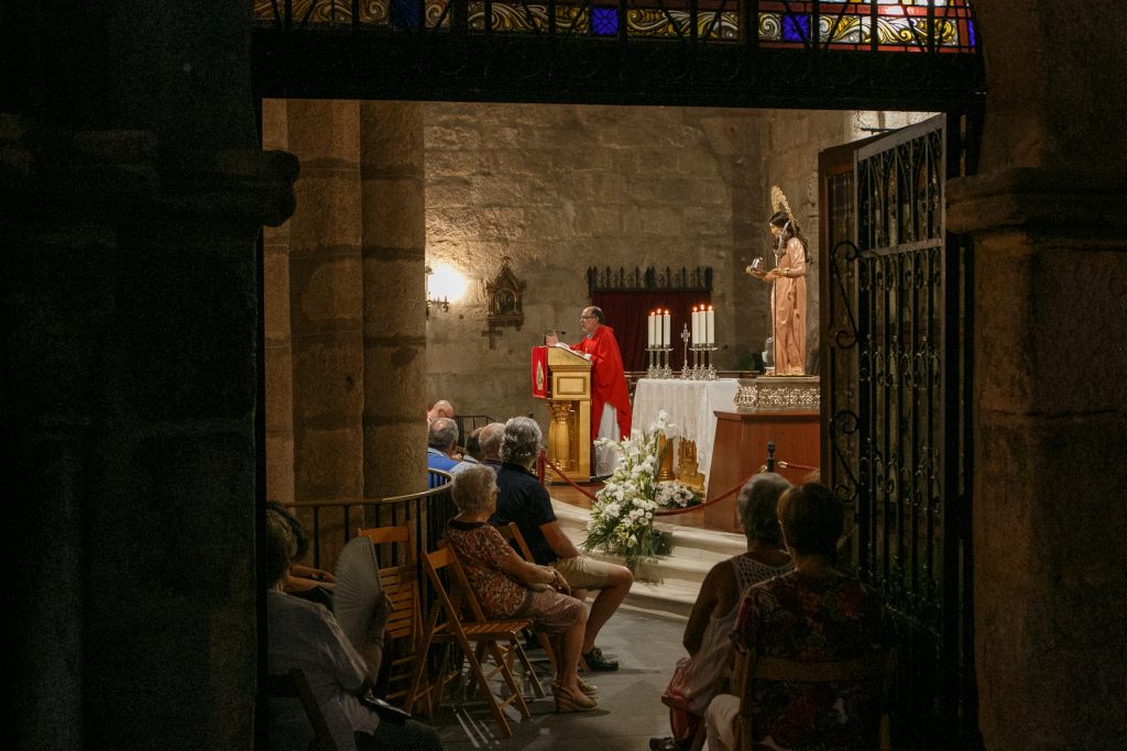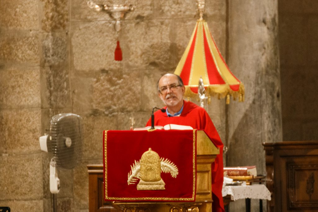 Don Jorge introduce en su reflexión las consideraciones de San Pablo sobre esta inclinación del ser humano hacia el pecado, de la que le reconforta el sacrificio de Cristo que nos redime y restablece nuestra relación con Dios. Santa Eulalia nos sirve de ejemplo para tener la fortaleza necesaria ante el pecado. Hemos vuelto a orar por D. Juan Cascos, que gracias a Dios hoy ha recibido el alta hospitalaria.