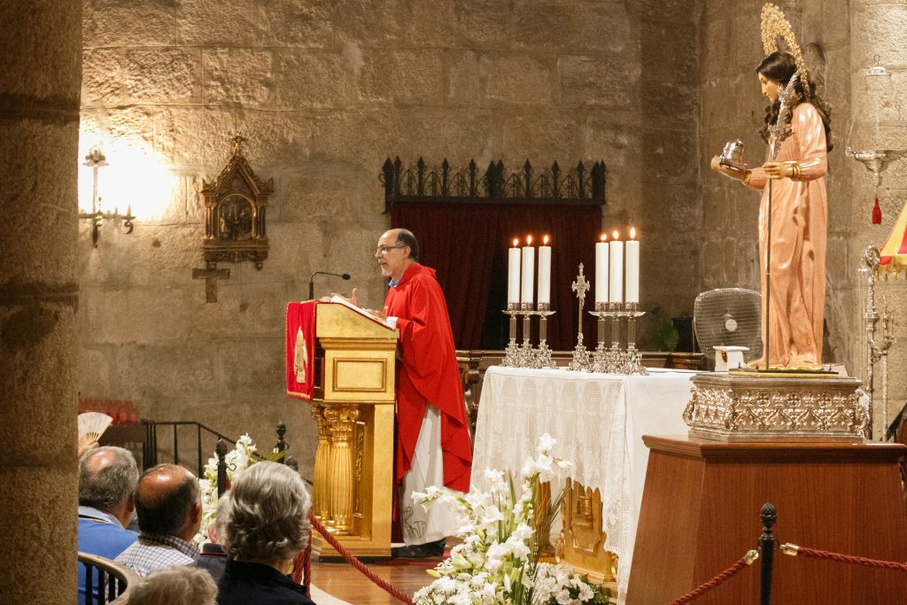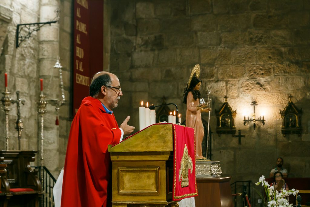 Tercer día del Trecenario en honor a la Virgen y Mártir Santa Eulalia, en el que hemos recibido a la Comunidad Parroquial de Ntra. Sra. de los Milagros, con su Párroco D. Jorge Sánchez que ha presidido la Eucaristía y que nos ha hablado de cómo la relación de Dios con el hombre se rompe con el pecado y de cómo la naturaleza humana sucumbe ante el pecado desde nuestros primeros padres: Adan y Eva, y a partir de ese momento ese primer pecado original nos ha marcado y el pecado ha supuesto la ruptura de la relación entre el ser humano y su Creador, pero también la ruptura con si mismo, con el prójimo y como nos alerta el Papa Francisco con el resto de la creación, con la naturaleza.