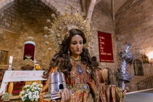 Durante la celebración del Trecenario, la imagen de Santa Eulalia se mantuvo en su camerin, bajando el día que se realizó la veneración.